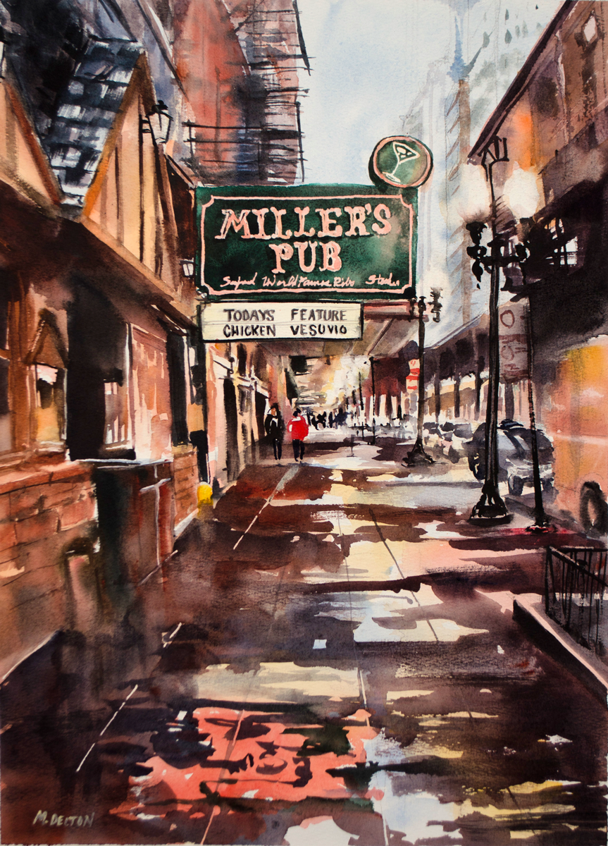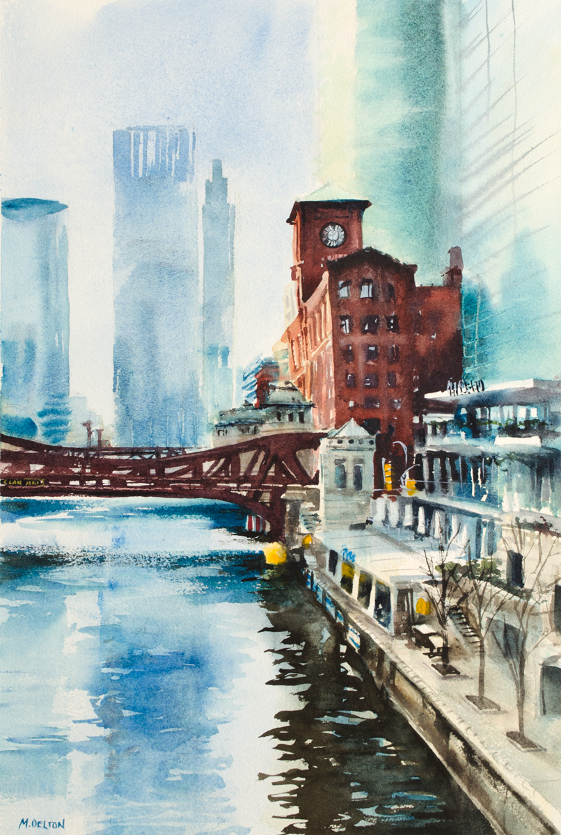 Painted en plein air on a chilly, Spring morning, this was a fantastic exercise in capturing the grittiness of Chicago steelwork and the fleeting reflections on the Chicago River.